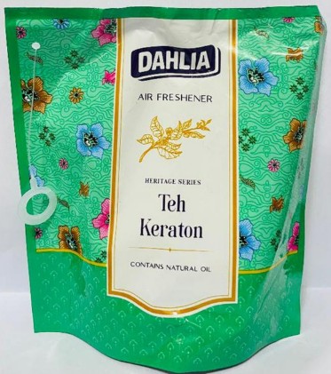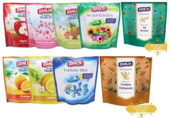 Dahlia air freshener easy to use in all areas of the house, car, bathroom, or office.  Hang it of your air cond. or your fan.